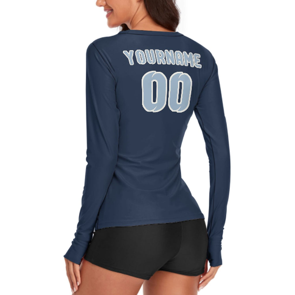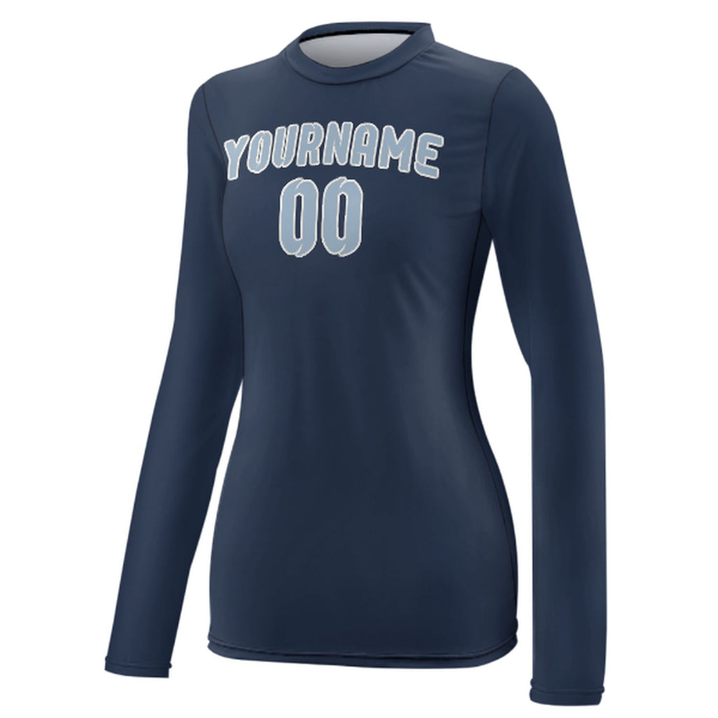 Custom Blue Light Blue Women's Long-Sleeve Shirt