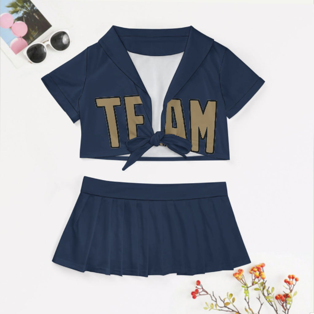 Custom Blue Light Khaki Cheerleading Uniform Set