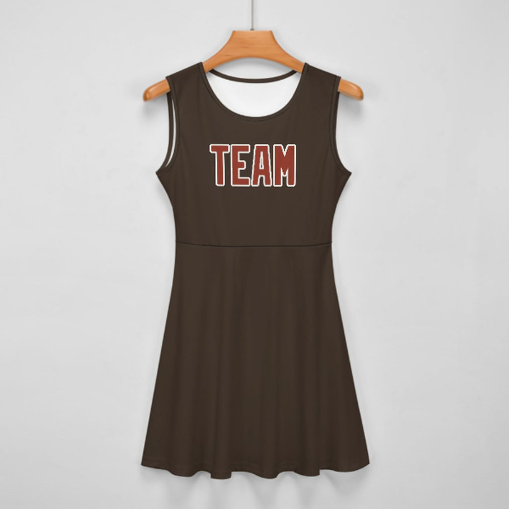 Custom Brown Coral Red Cheerleader Dress