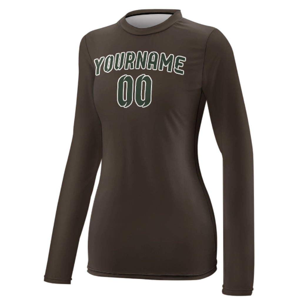 Custom Brown Dark Green Women's Long-Sleeve Shirt