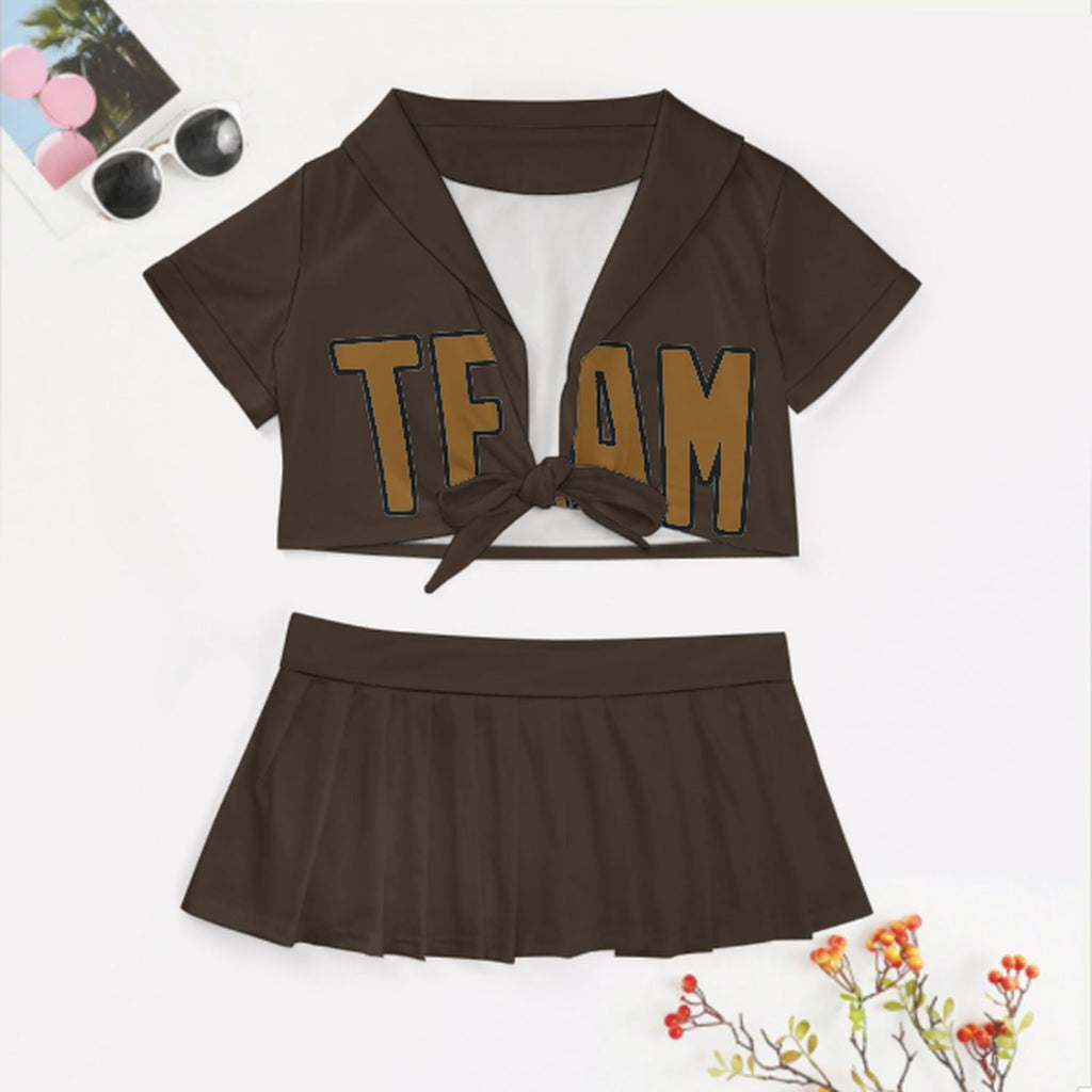 Custom Brown Khaki Cheerleading Uniform Set
