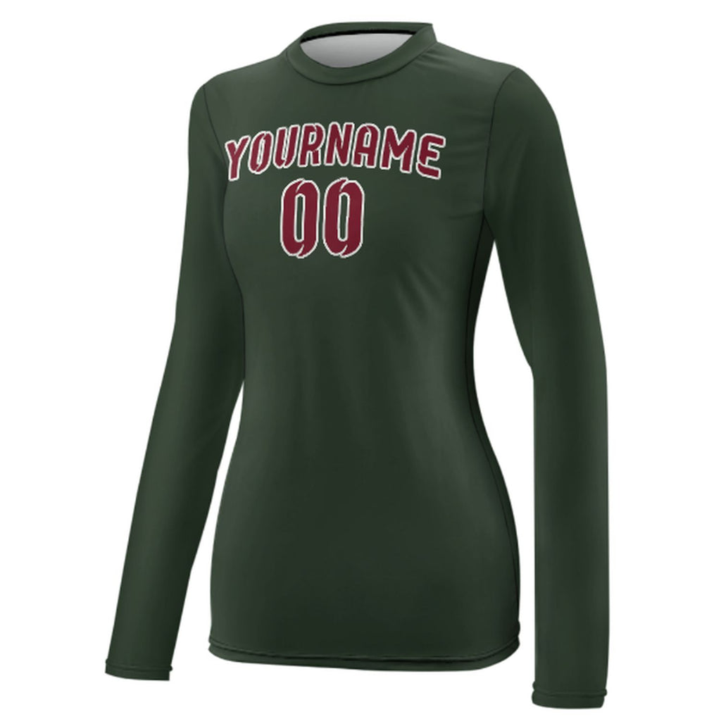 Custom Dark Green Crimson Red Women's Long-Sleeve Shirt