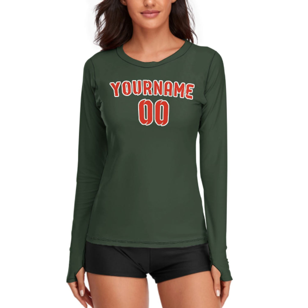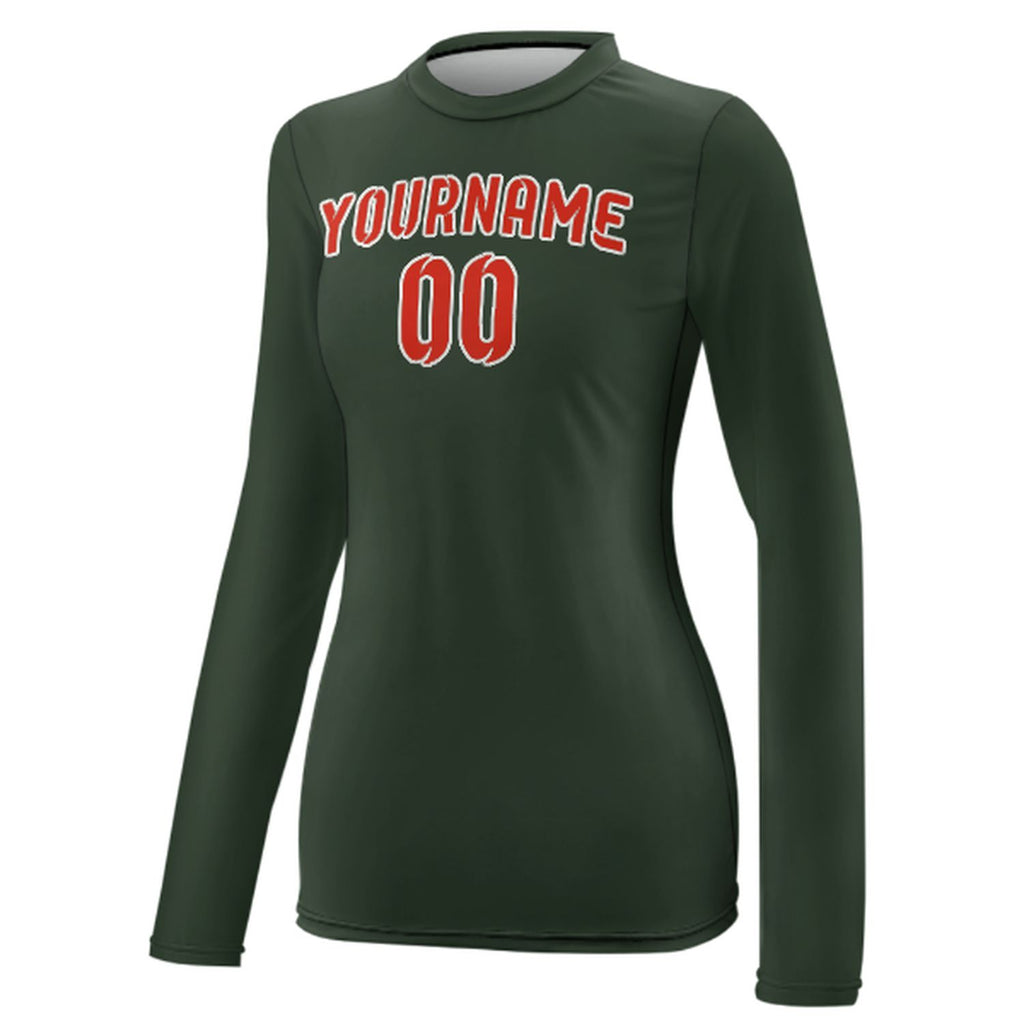 Custom Dark Green Orange Red Women's Long-Sleeve Shirt