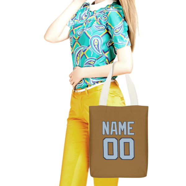Custom Khaki Light Blue Canvas Tote Bag