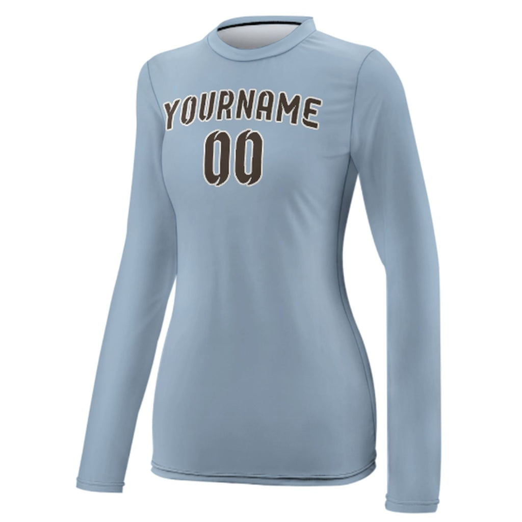 Custom Light Blue Brown Women's Long-Sleeve Shirt