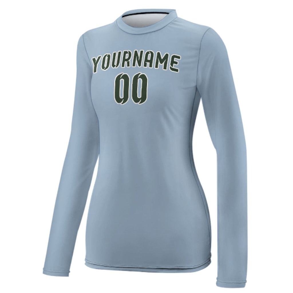 Custom Light Blue Dark Green Women's Long-Sleeve Shirt
