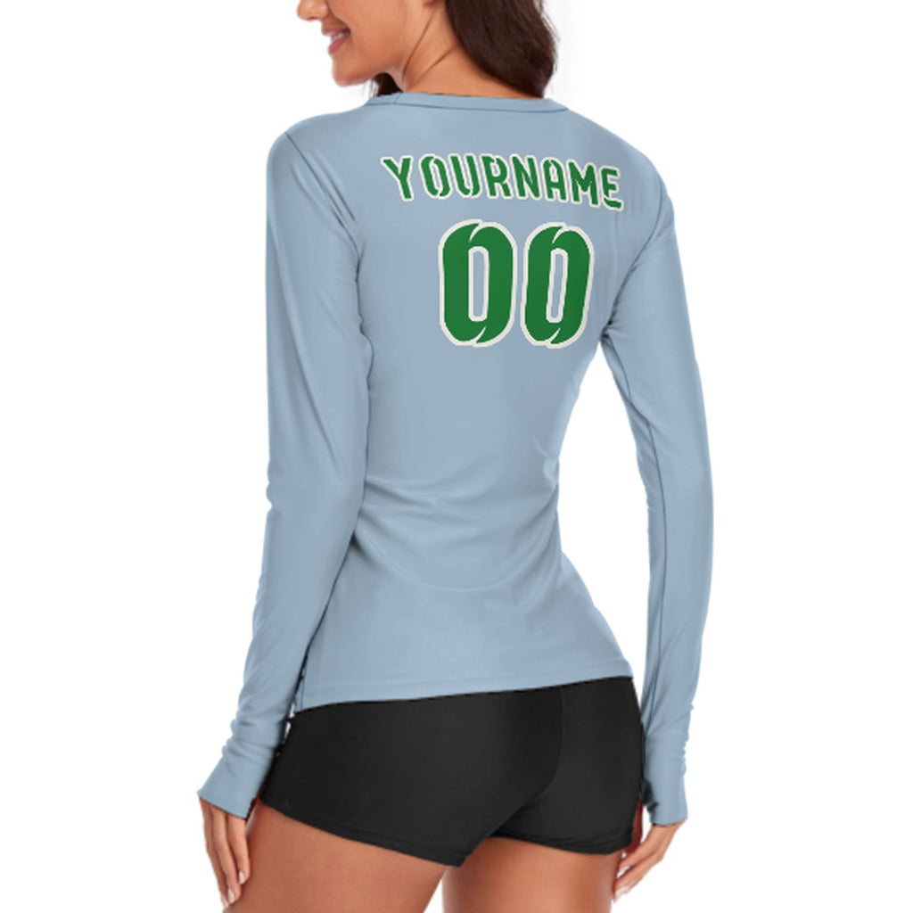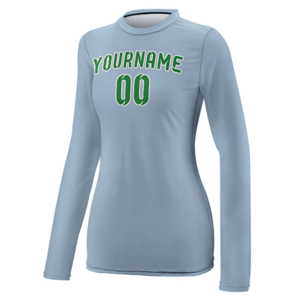Custom Light Blue Emerald Green Women's Long-Sleeve Shirt