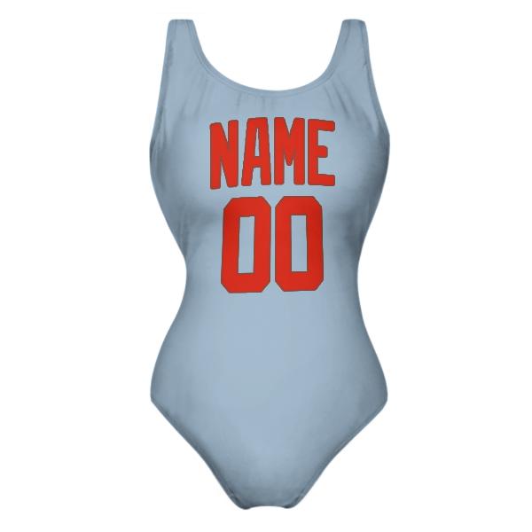 Custom Light Blue Orange Red Swimsuit