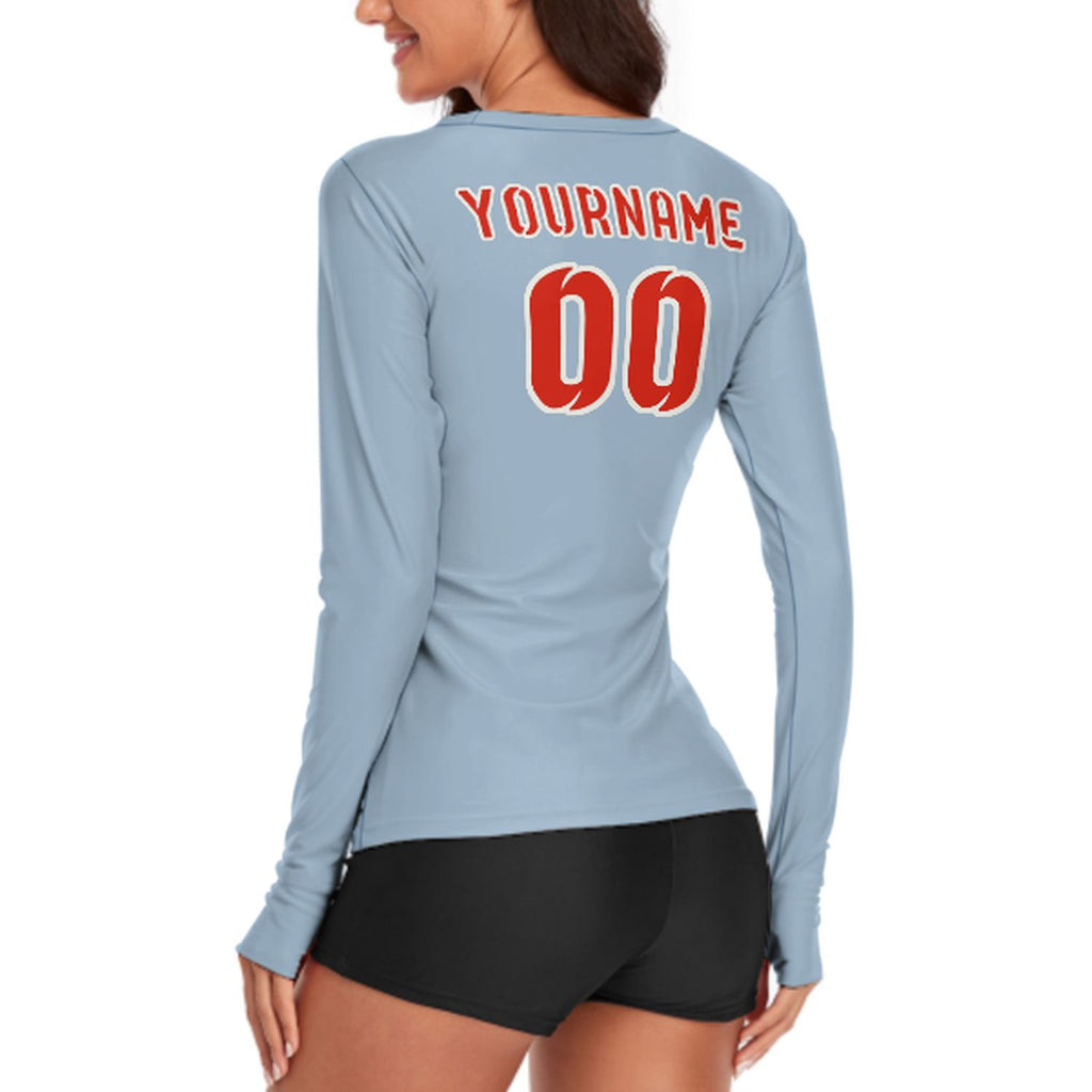Custom Light Blue Orange Red Women's Long-Sleeve Shirt