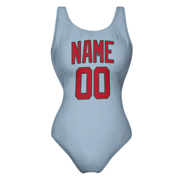 Custom Light Blue Red Swimsuit