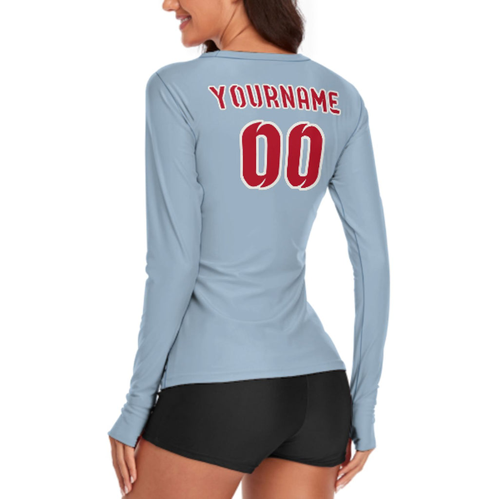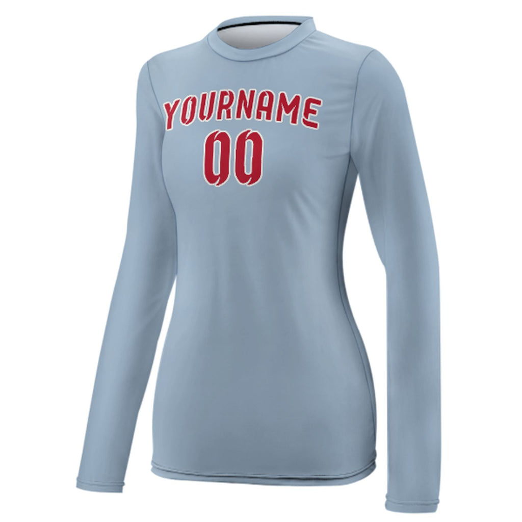 Custom Light Blue Red Women's Long-Sleeve Shirt