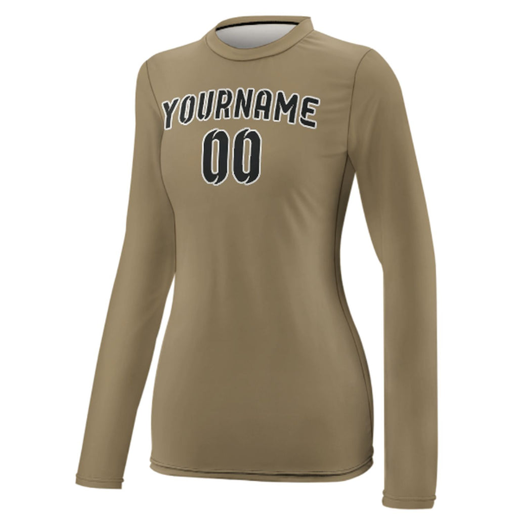 Custom Light Khaki Black Women's Long-Sleeve Shirt