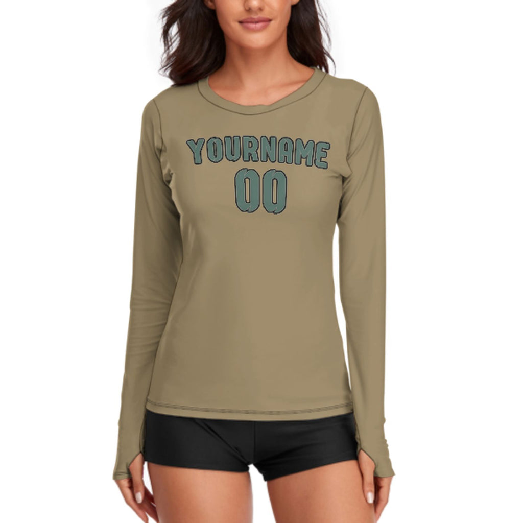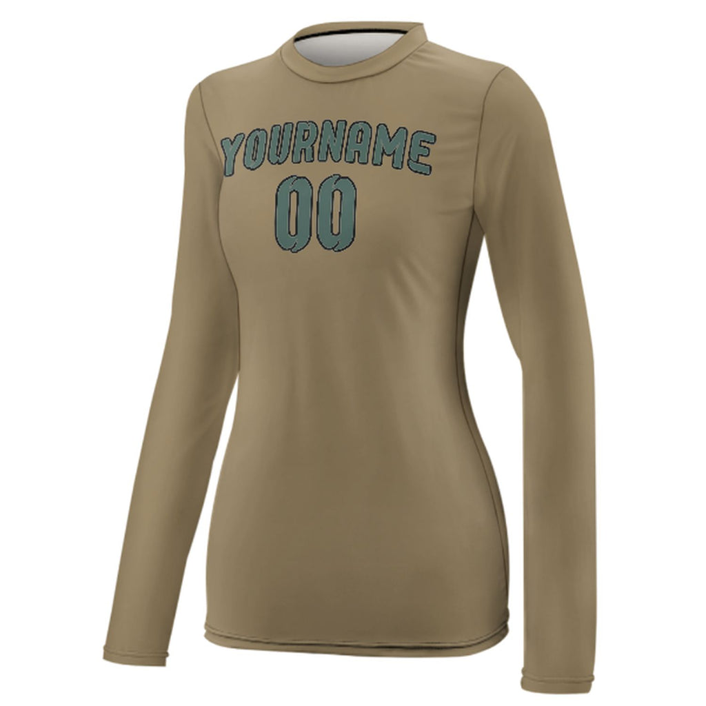 Custom Light Khaki Blue Green Women's Long-Sleeve Shirt
