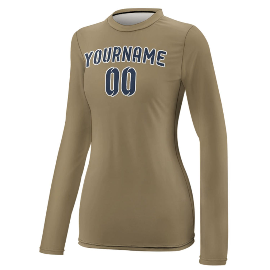 Custom Light Khaki Blue Women's Long-Sleeve Shirt