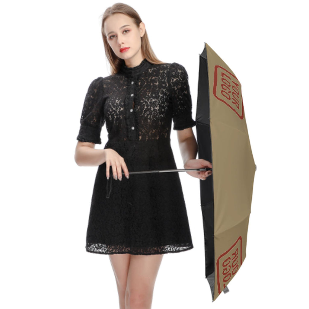 Custom Light Khaki Coral Red Automatic Umbrella