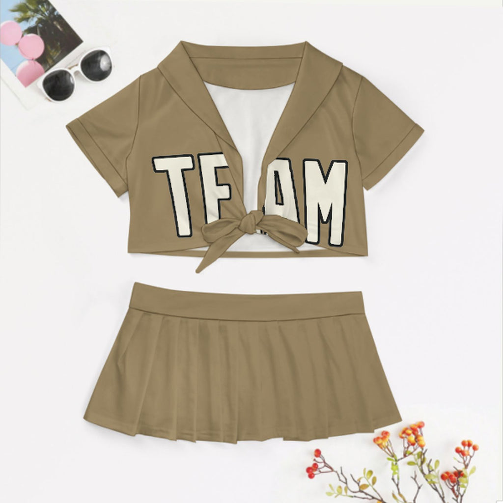Custom Light Khaki Cream Cheerleading Uniform Set