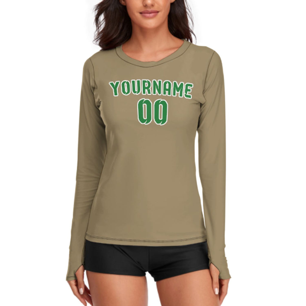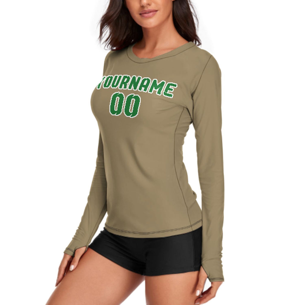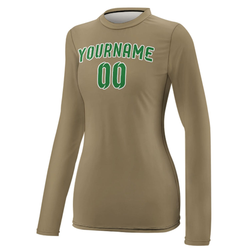Custom Light Khaki Emerald Green Women's Long-Sleeve Shirt
