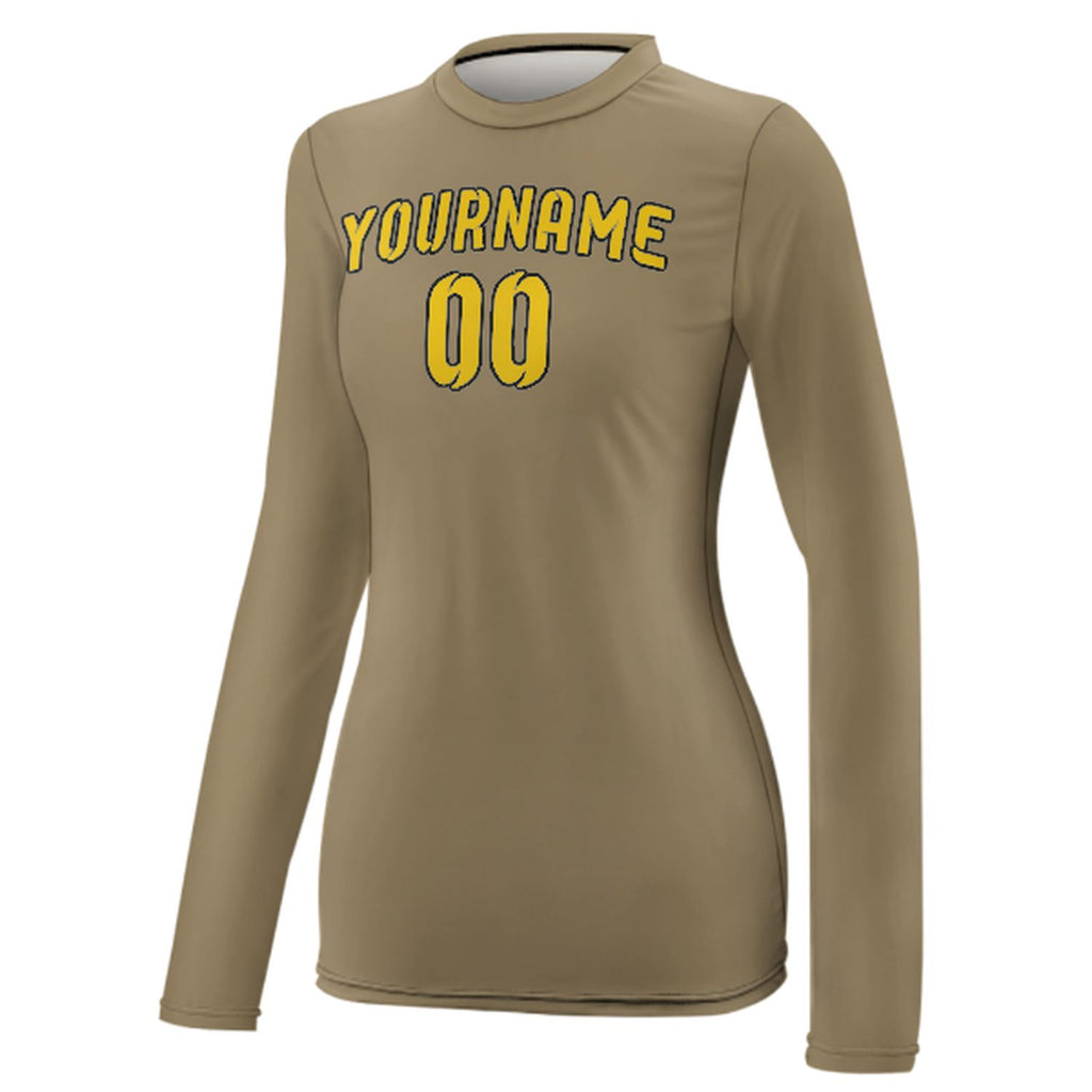 Custom Light Khaki Gold Women's Long-Sleeve Shirt