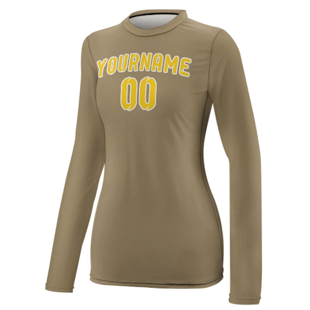 Custom Light Khaki Gold Women's Long-Sleeve Shirt