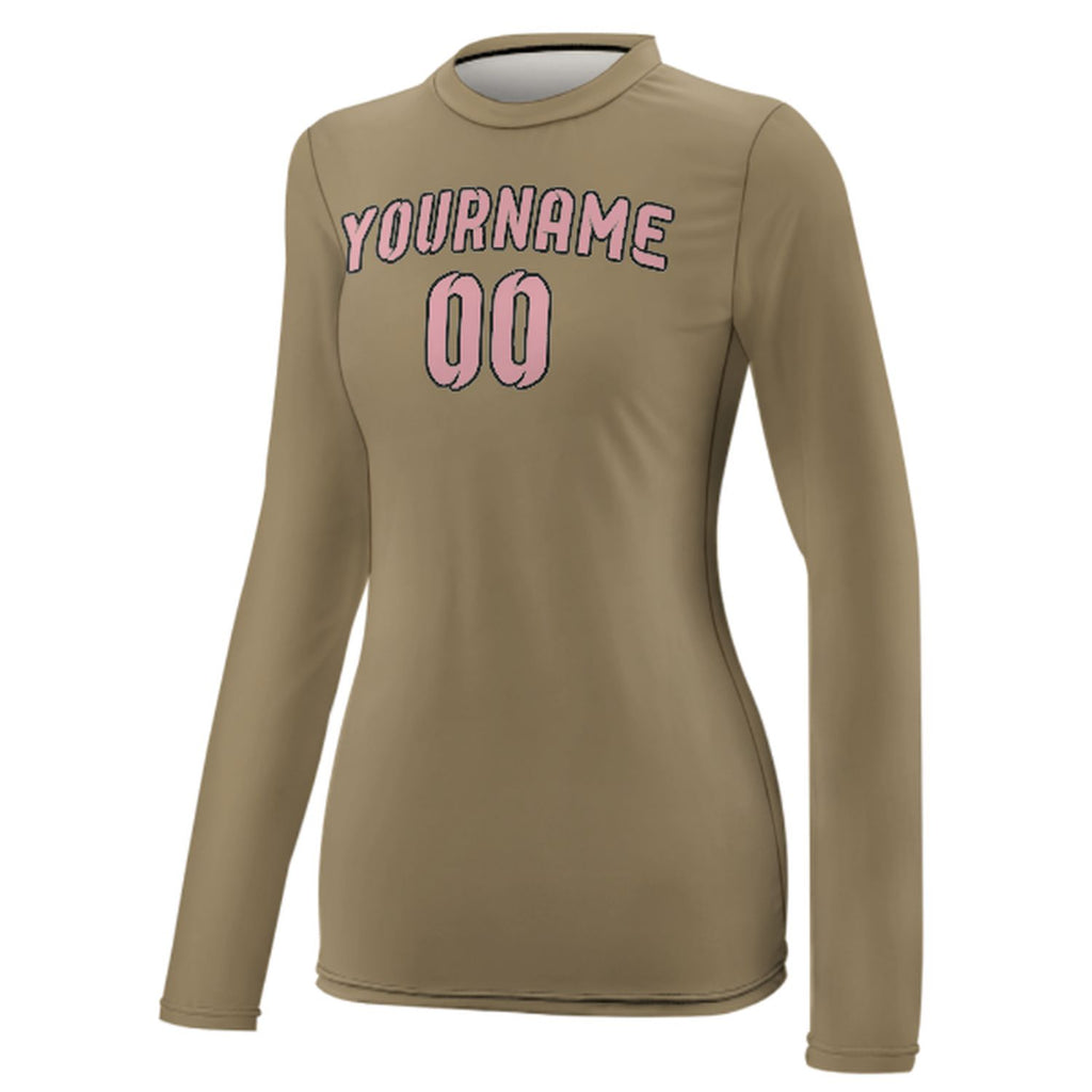Custom Light Khaki Light Pink Women's Long-Sleeve Shirt