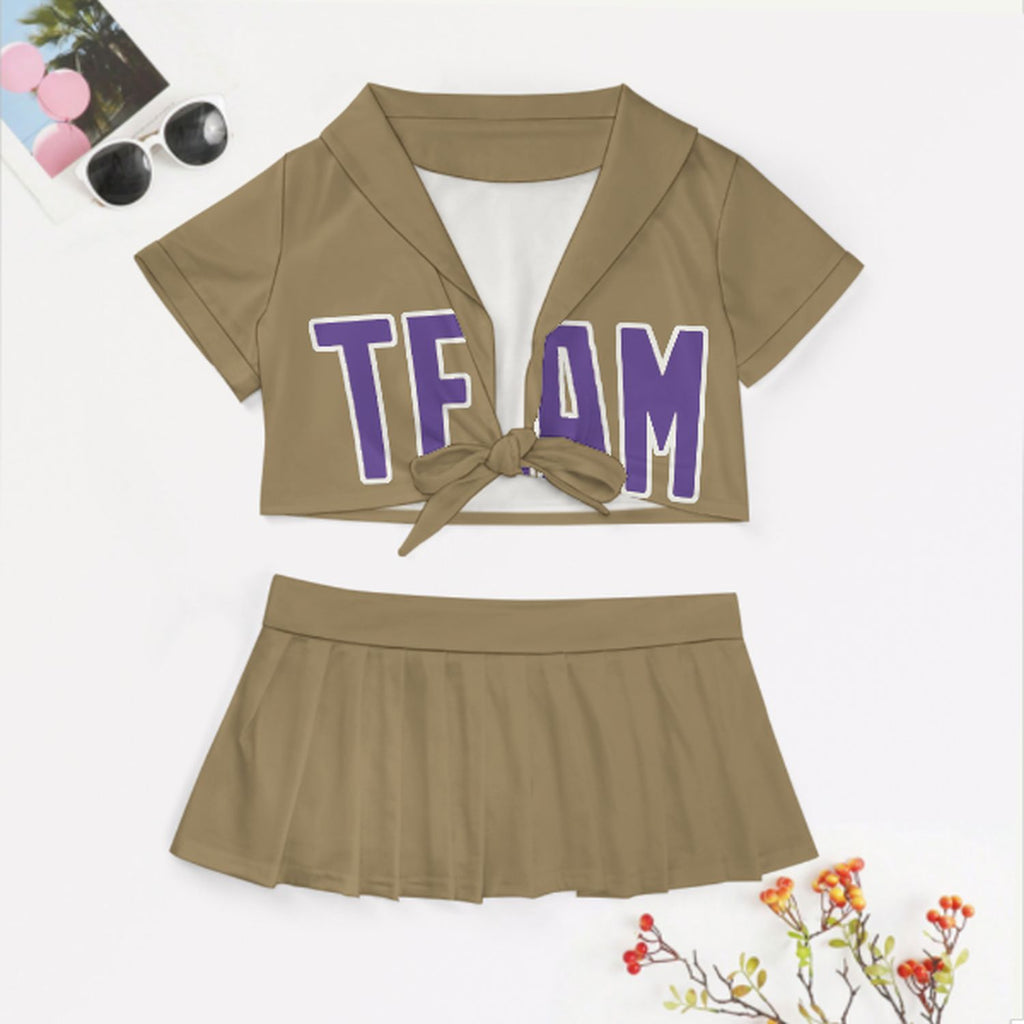 Custom Light Khaki Light Purple Cheerleading Uniform Set