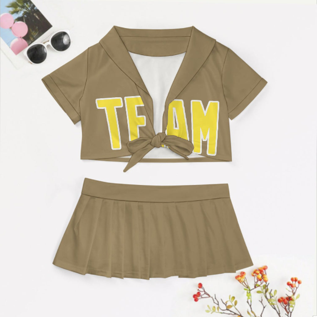 Custom Light Khaki Light Yellow Cheerleading Uniform Set