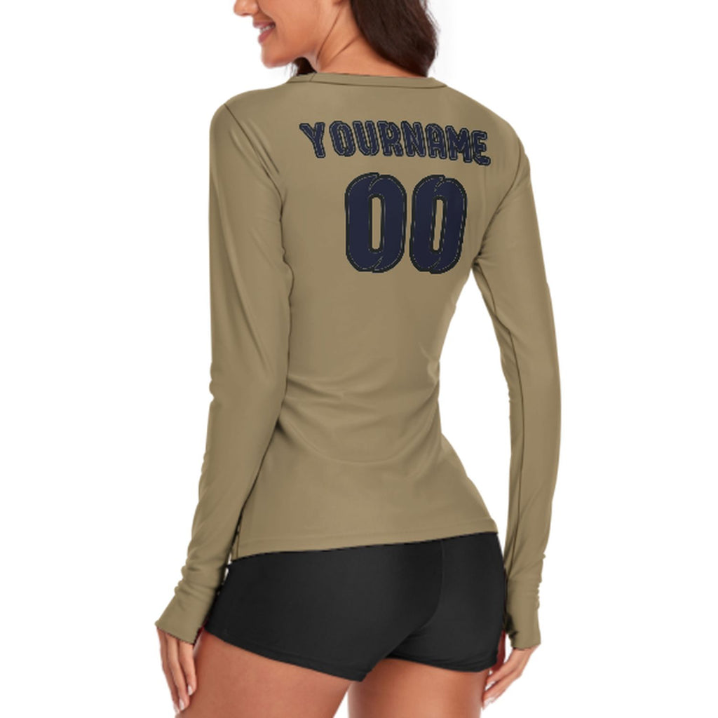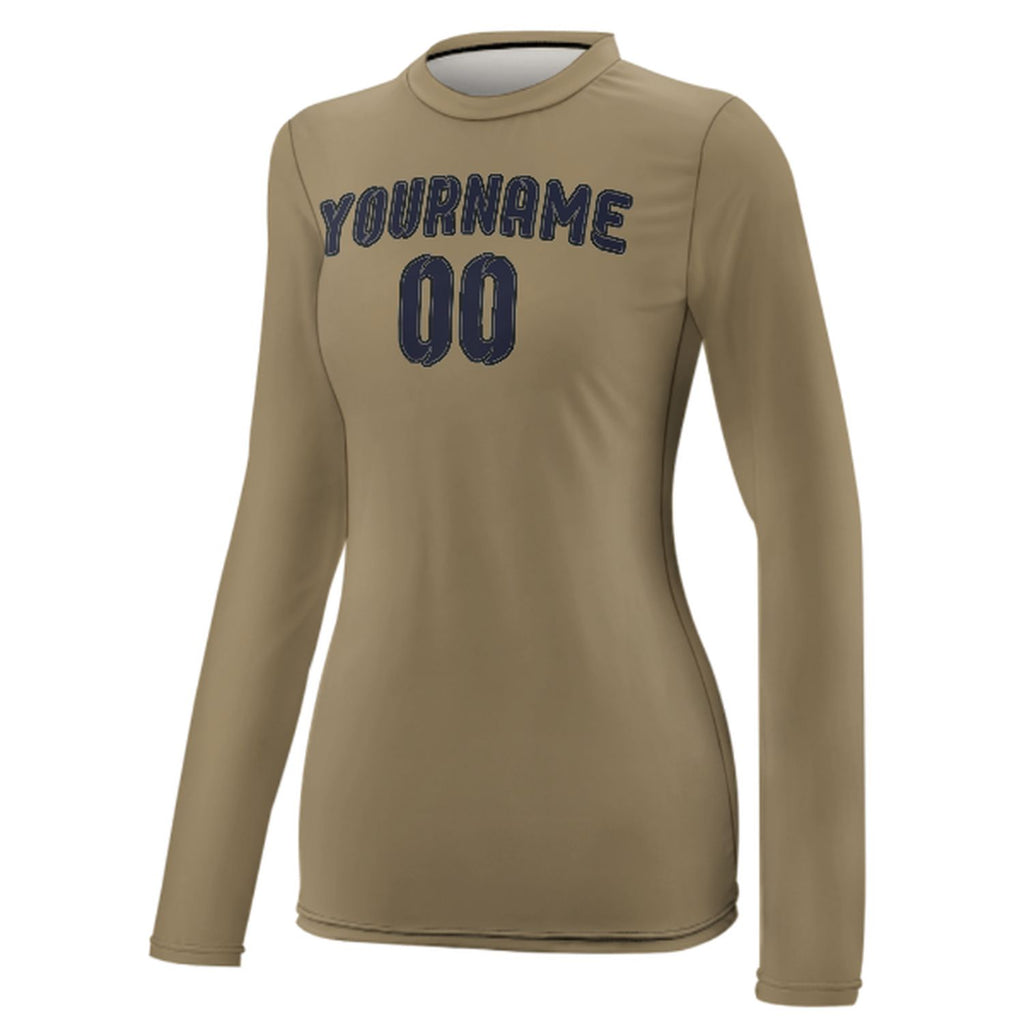 Custom Light Khaki Navy Women's Long-Sleeve Shirt
