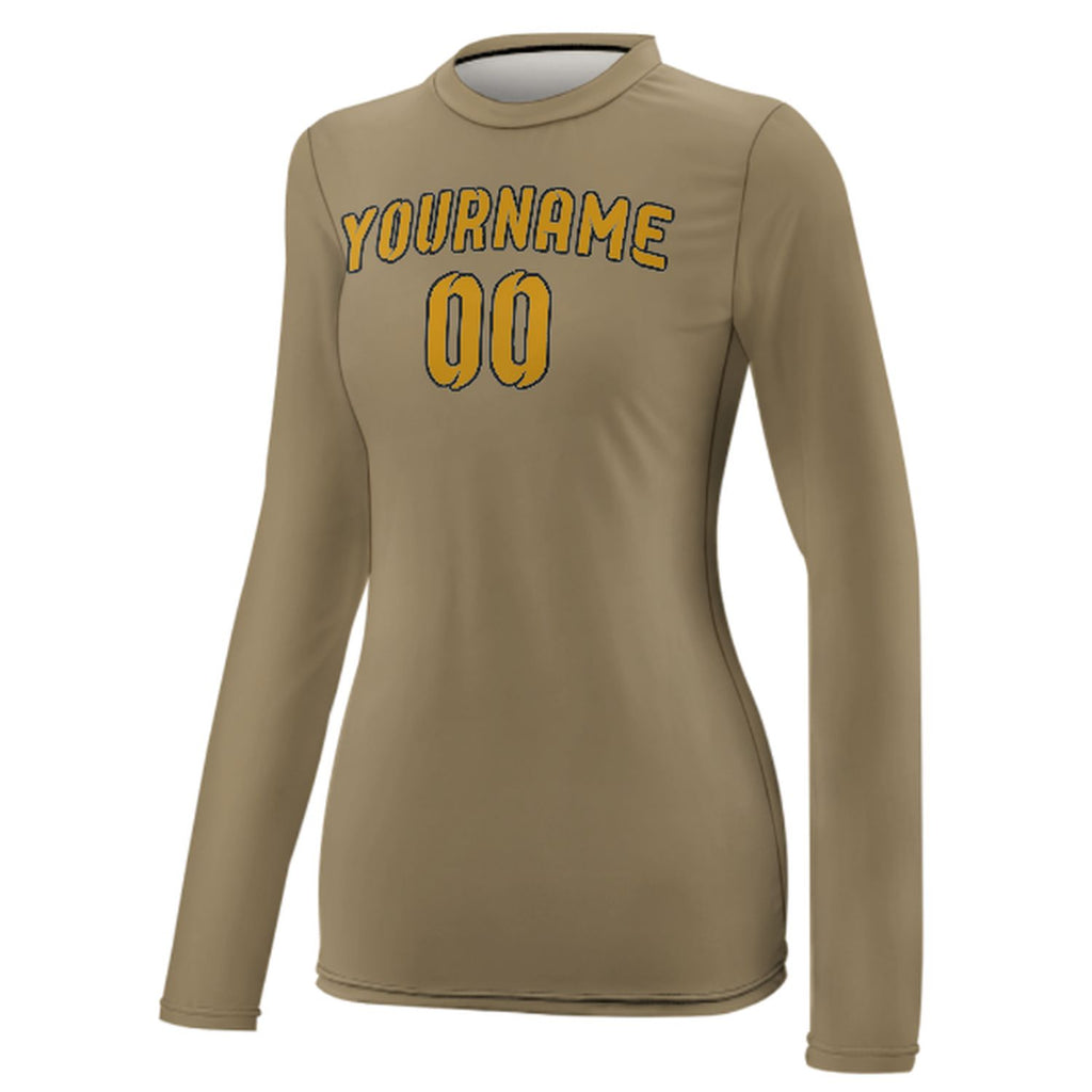 Custom Light Khaki Yellow Women's Long-Sleeve Shirt