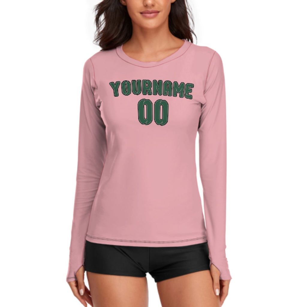 Custom Light Pink Green Women's Long-Sleeve Shirt