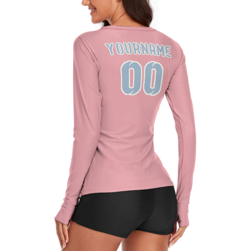 Custom Light Pink Light Blue Women's Long-Sleeve Shirt