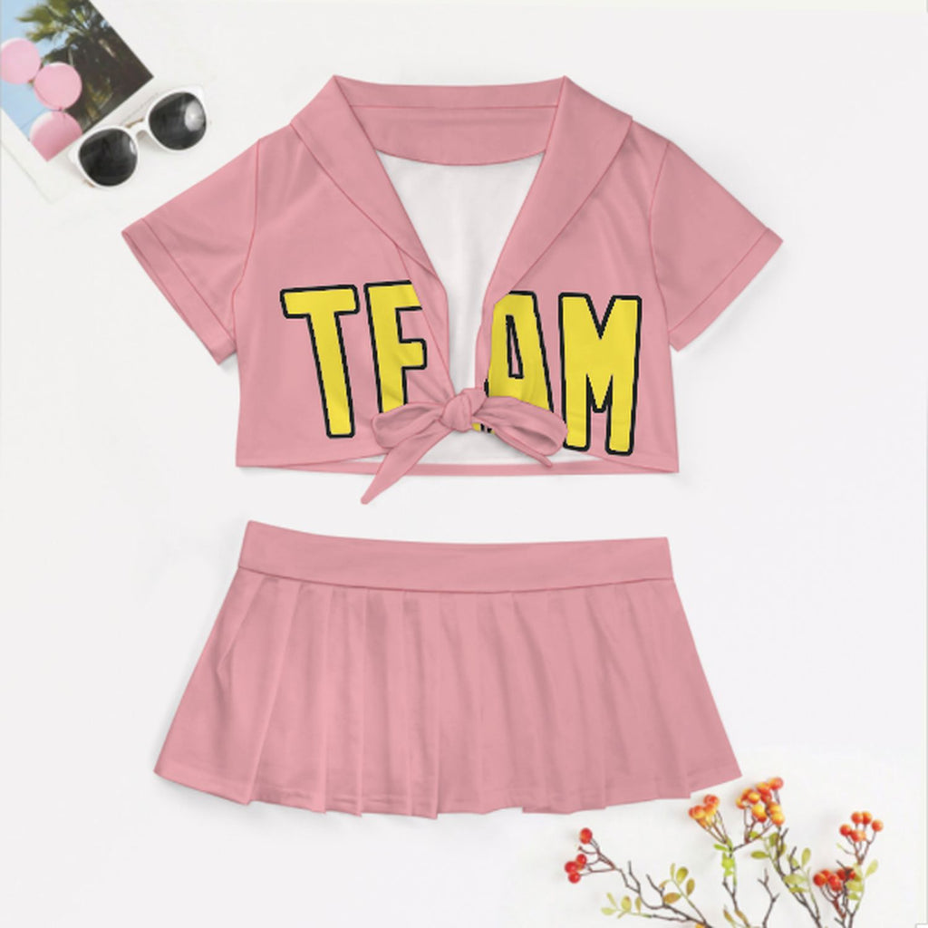 Custom Light Pink Light Yellow Cheerleading Uniform Set