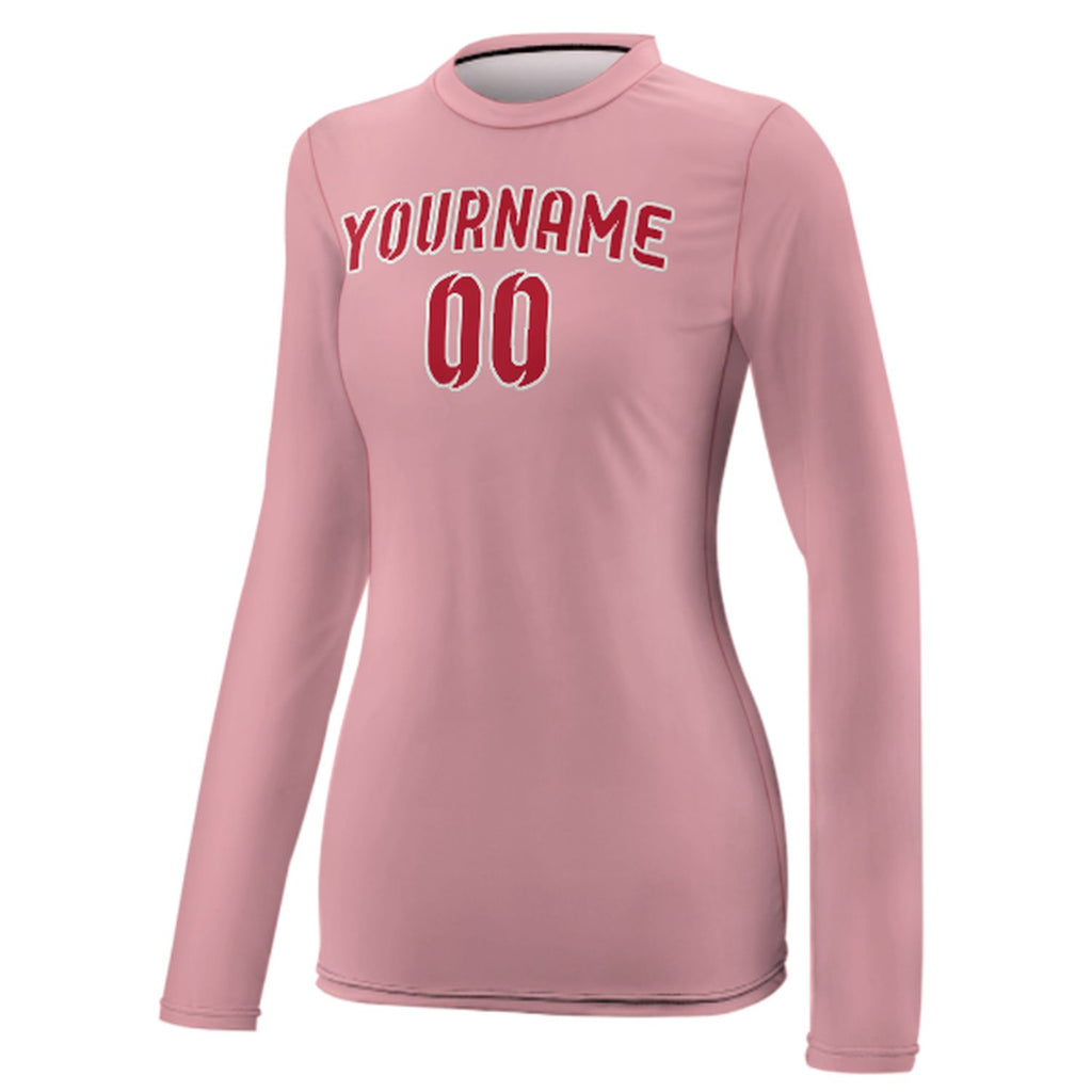 Custom Light Pink Red Women's Long-Sleeve Shirt