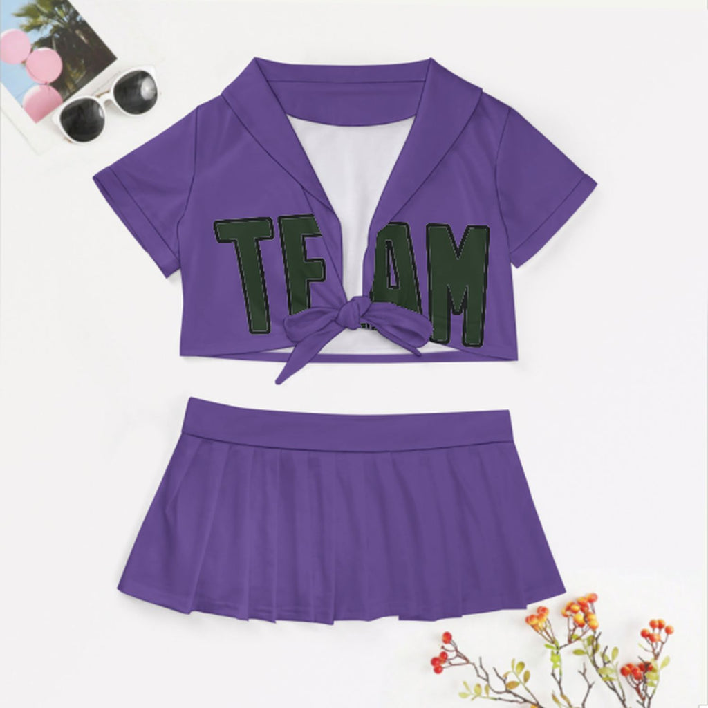 Custom Light Purple Dark Green Cheerleading Uniform Set