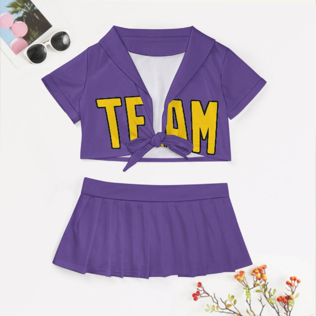 Custom Light Purple Gold Cheerleading Uniform Set