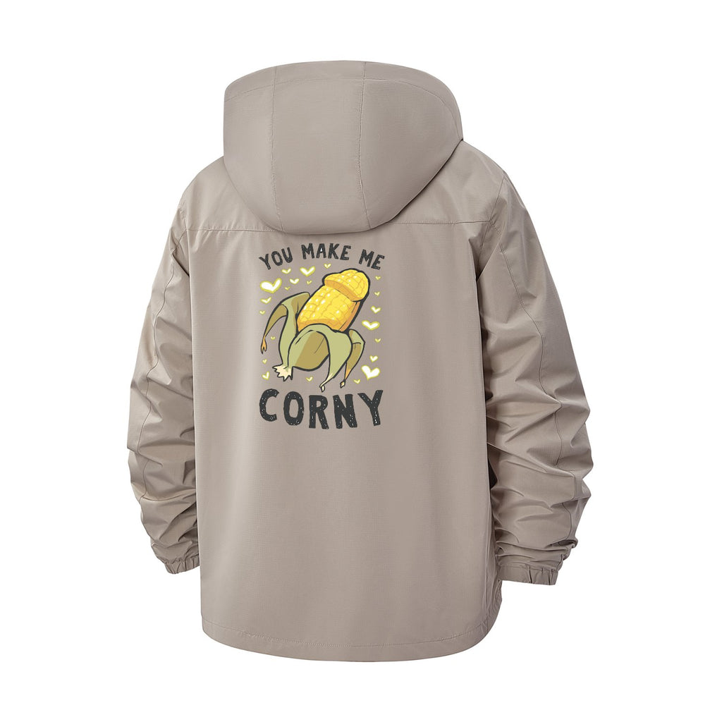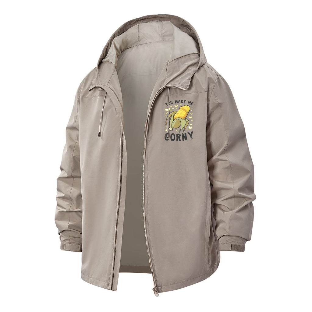 Cute Corn Motif Unisex Full-Zip Printed Waterproof Hooded Windbreaker
