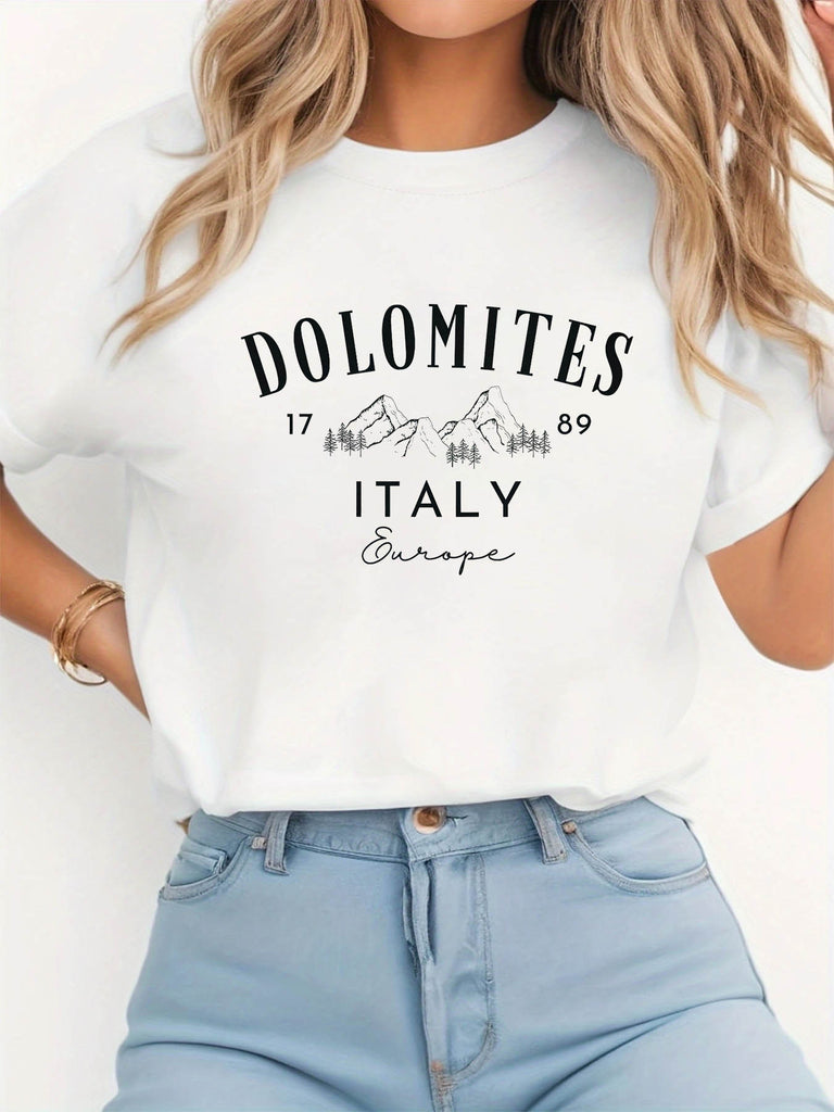 Cute T Shirts For Women Dolomites Italy Mountain Range With Vintage Style T Shirt, Black T Shirt Women, Womens Night Shirts