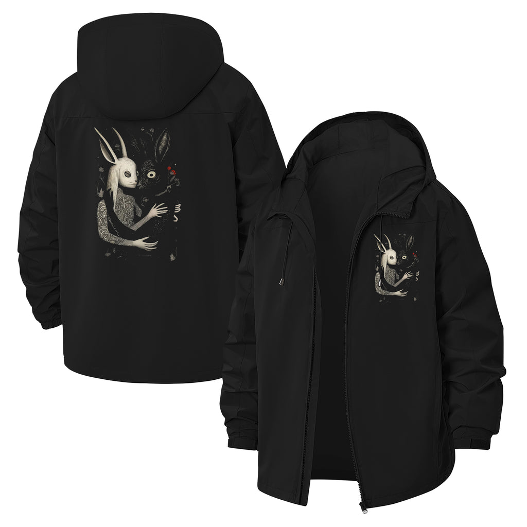 Dark Rabbit Art Unisex Full-Zip Printed Waterproof Hooded Windbreaker