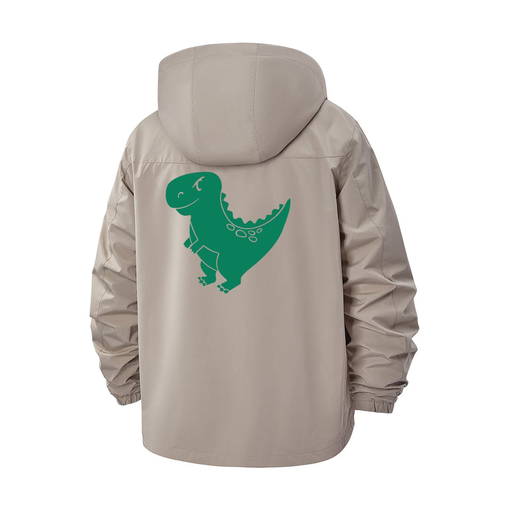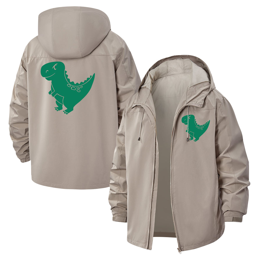 Dinosaur Graphic Unisex Full-Zip Printed Waterproof Hooded Windbreaker