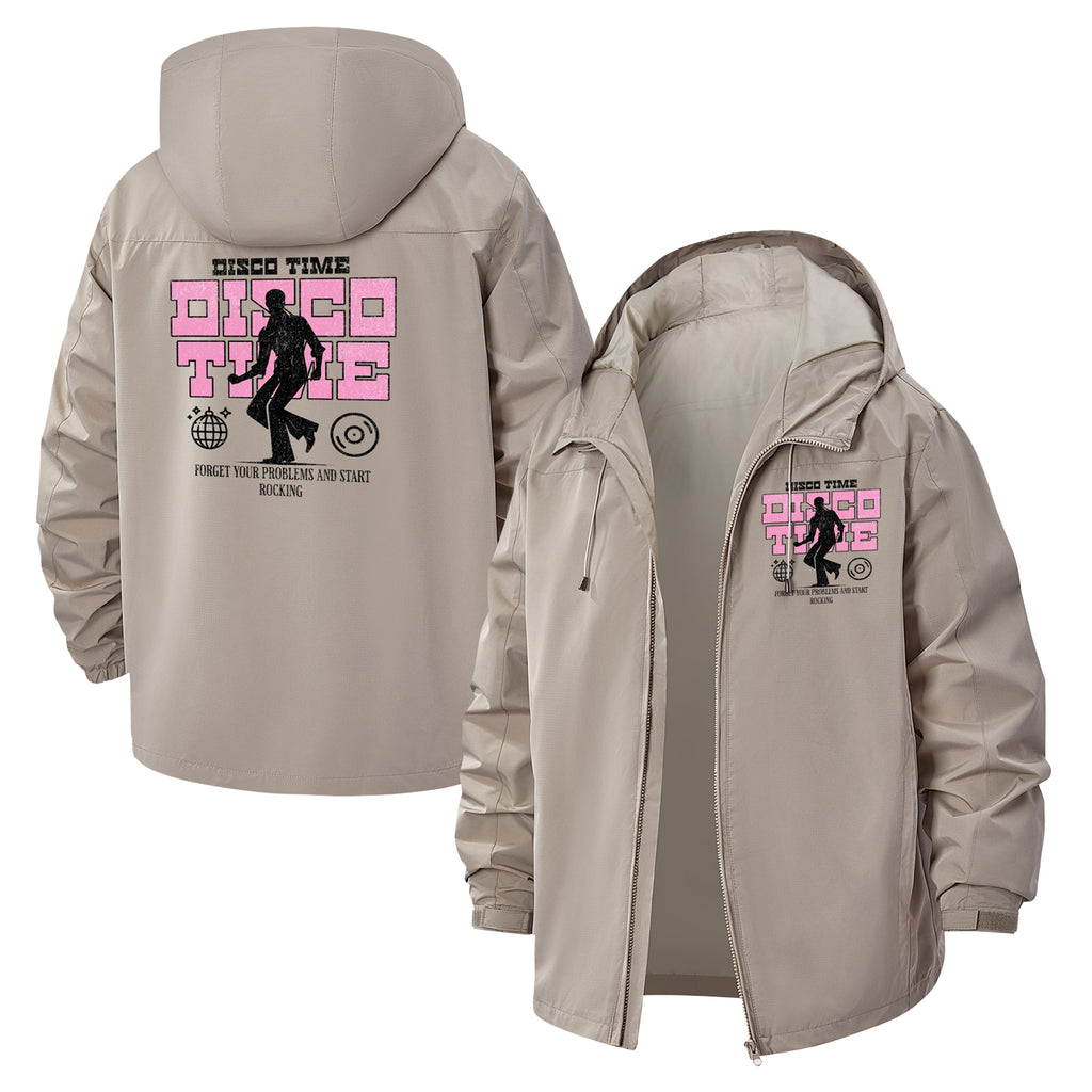 Disco Theme Unisex Full-Zip Printed Waterproof Hooded Windbreaker