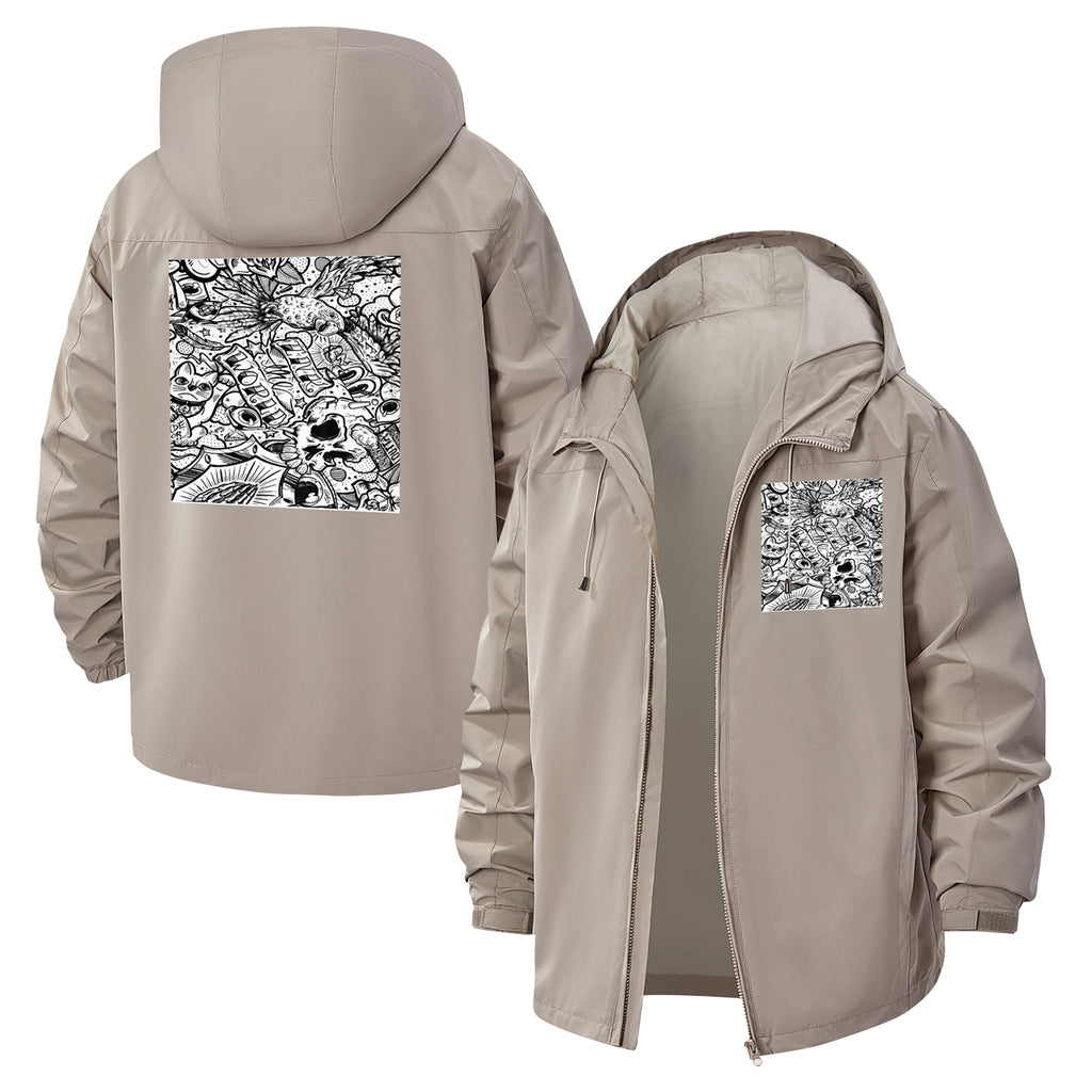 Doodle Skull Unisex Full-Zip Printed Waterproof Hooded Windbreaker