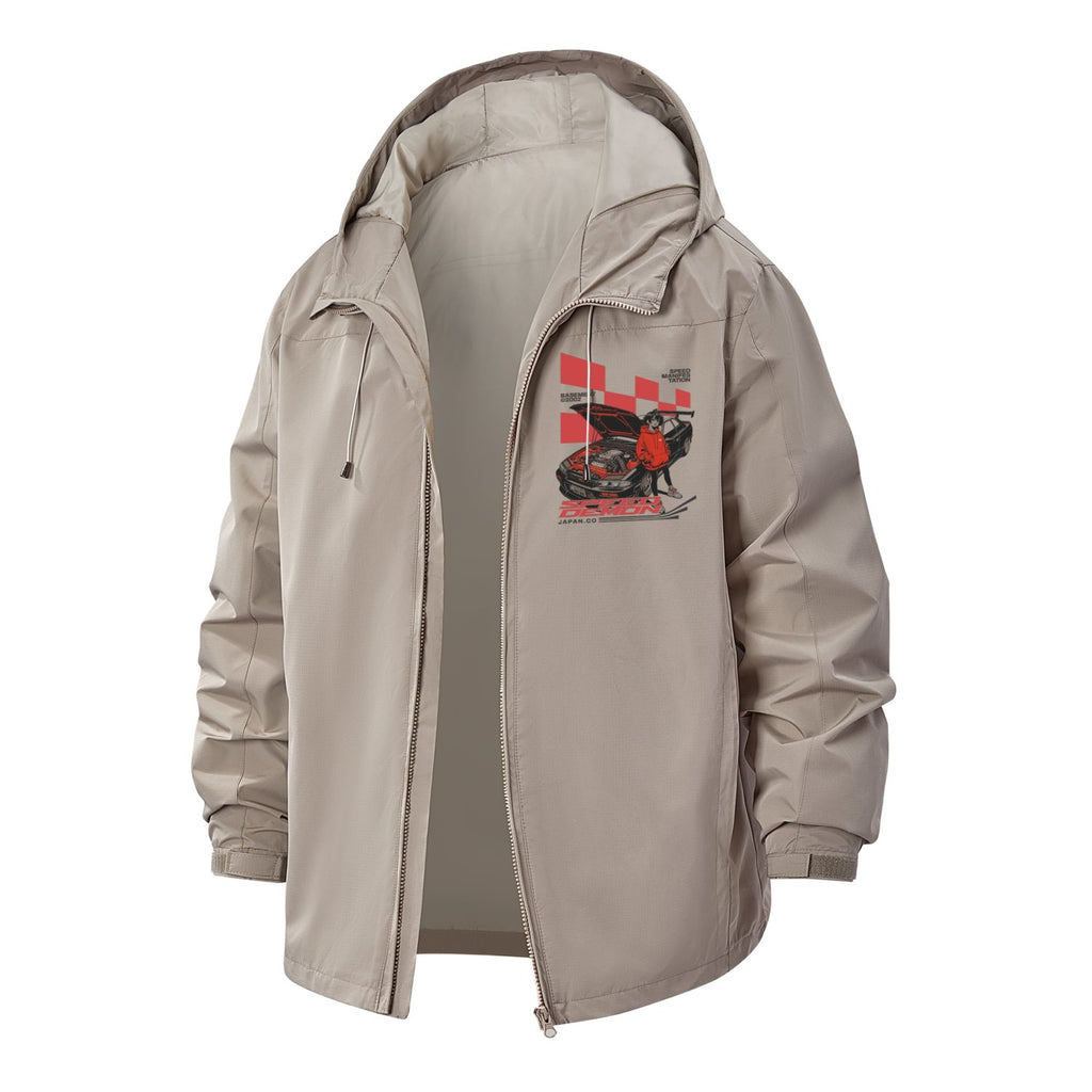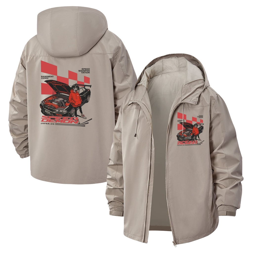 Drag Racing Car Unisex Full-Zip Printed Waterproof Hooded Windbreaker