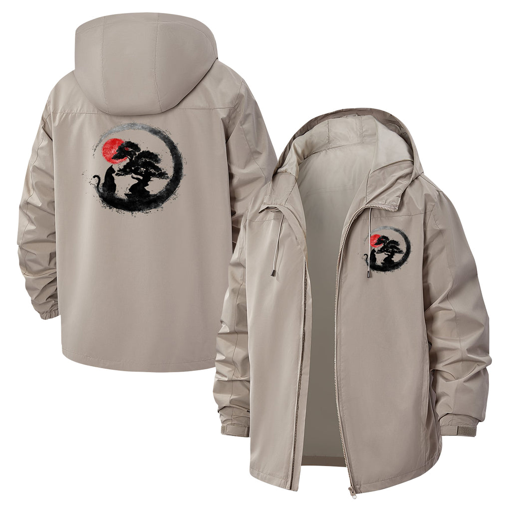 Dragon Brush Art Unisex Full-Zip Printed Waterproof Hooded Windbreaker