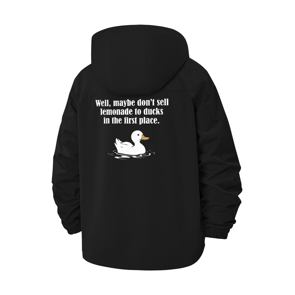 Duck Meme Quote Unisex Full-Zip Printed Waterproof Hooded Windbreaker