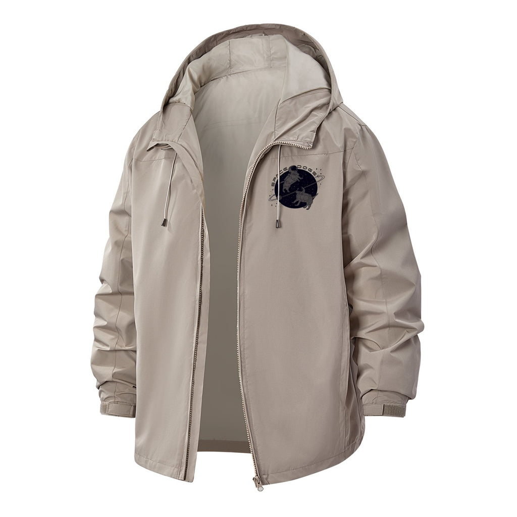 Earth Globe Graphic Unisex Full-Zip Printed Waterproof Hooded Windbreaker