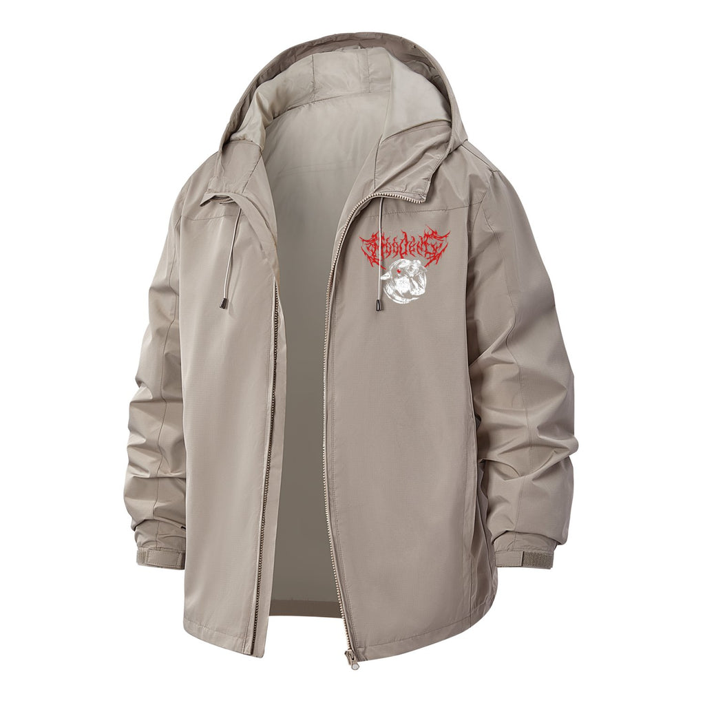 Edgy Skull Graphic Unisex Full-Zip Printed Waterproof Hooded Windbreaker