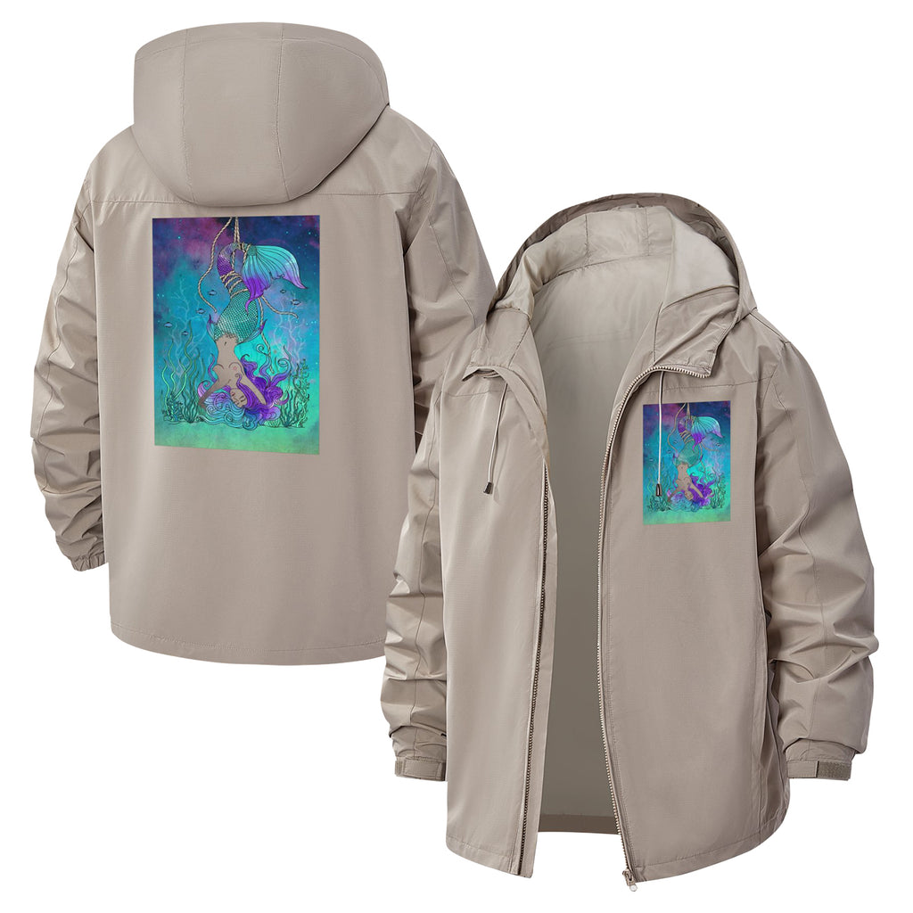Fantasy Mermaid Art Unisex Full-Zip Printed Waterproof Hooded Windbreaker