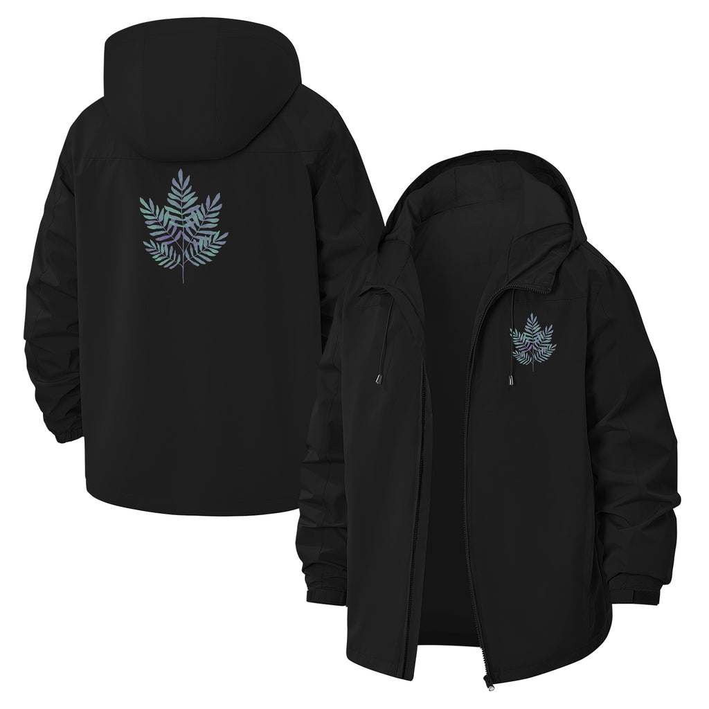 Fern Leaf Unisex Full-Zip Printed Waterproof Hooded Windbreaker
