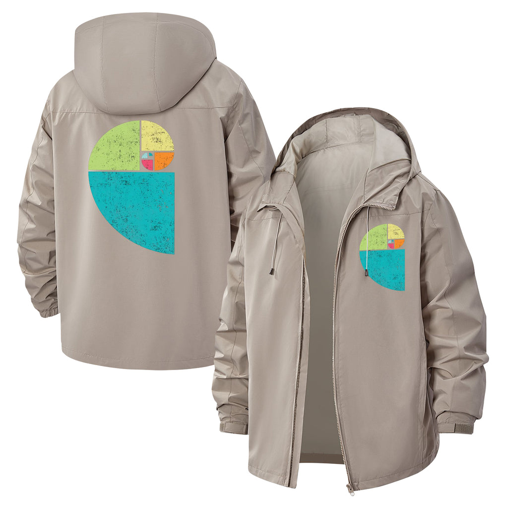 Fibonacci Spiral Unisex Full-Zip Printed Waterproof Hooded Windbreaker