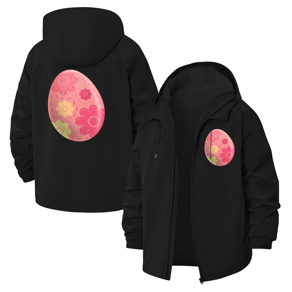 Floral Easter Egg Unisex Full-Zip Printed Waterproof Hooded Windbreaker