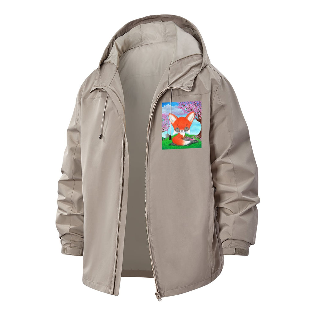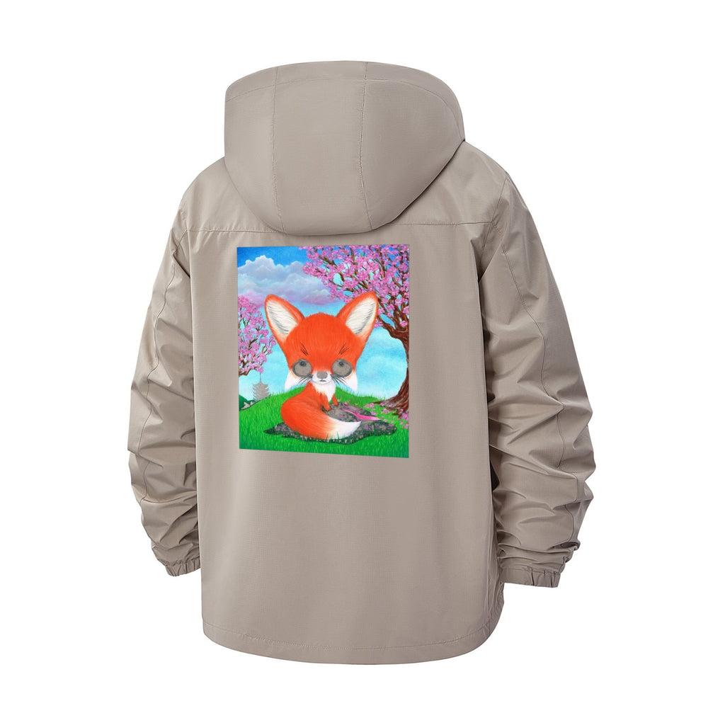 Fox and Blossoms Unisex Full-Zip Printed Waterproof Hooded Windbreaker